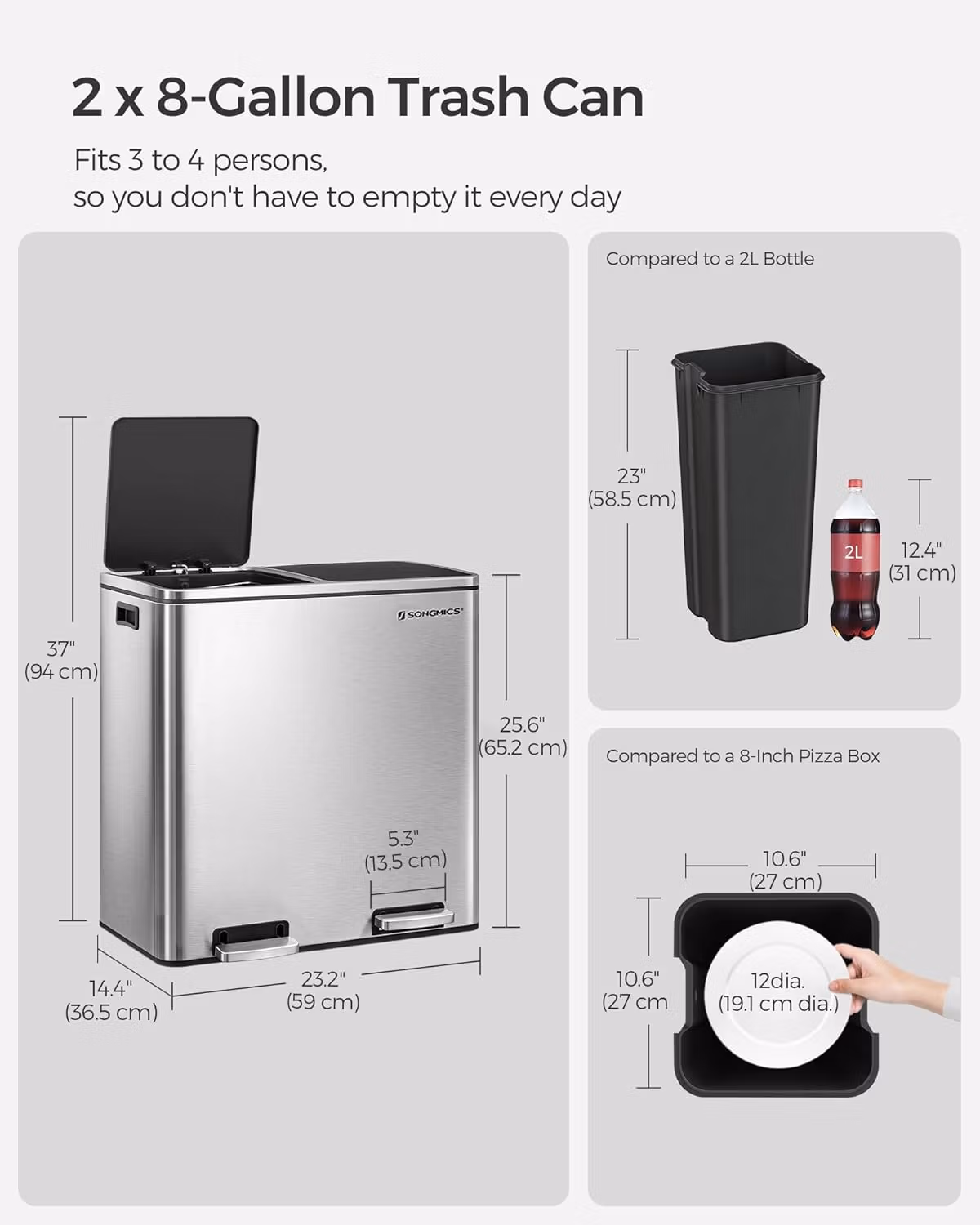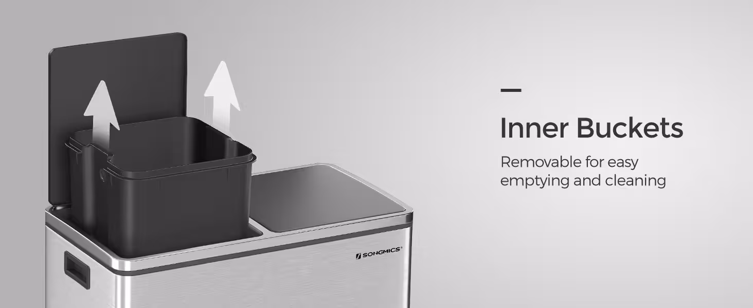 with 15 Trash Bags, 2 Compartments, Plastic Inner Buckets and Hinged Lids, Airtight