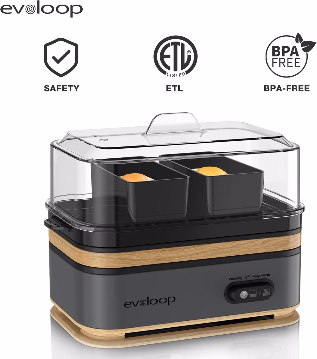 - MULTI FUNCTIONAL EGG COOKER: The Evoloop egg boiler is ideal for a busy solitary person or family to make hard-boiled eggs, soft-boiled eggs, poached eggs, deviled eggs, egg sandwiches, scrambled eggs, the ideal dish for any breakfast and special event
